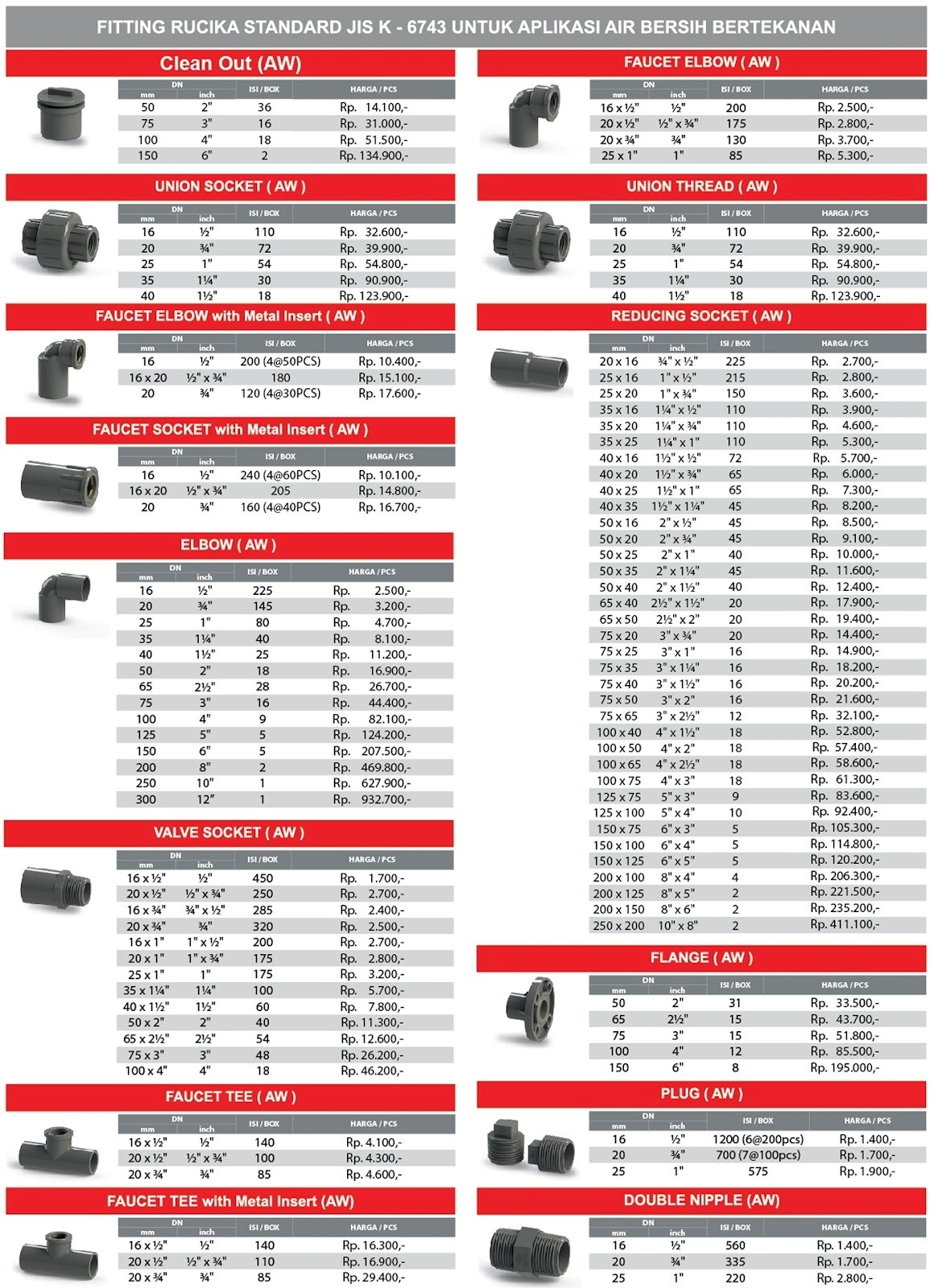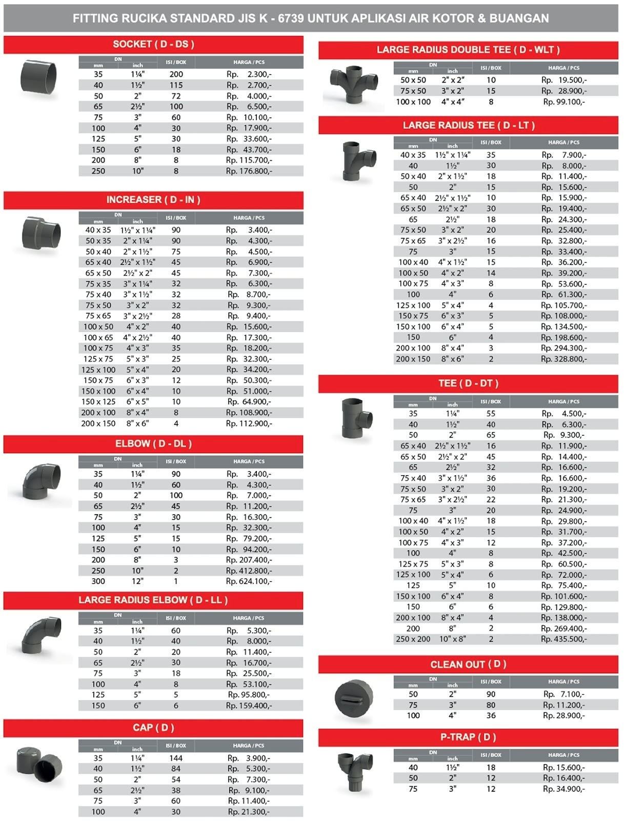 Daftar Harga dan Ukuran Fitting Sambungan Pipa RUCIKA