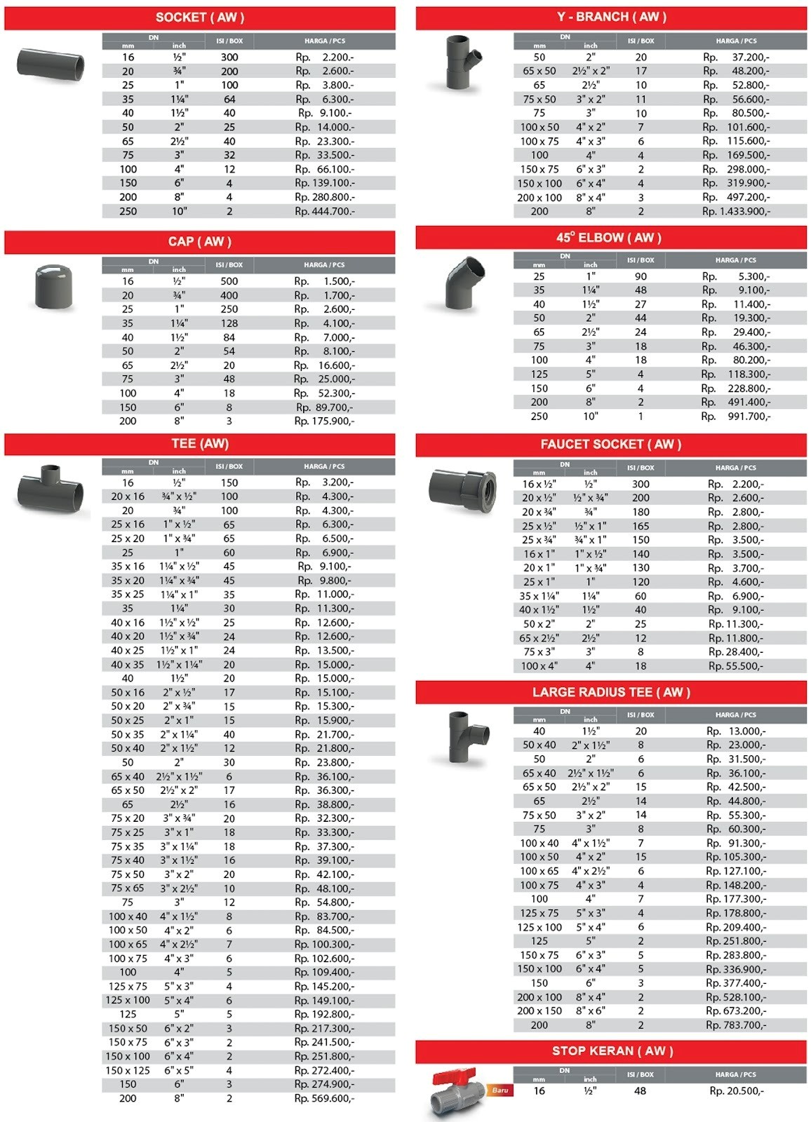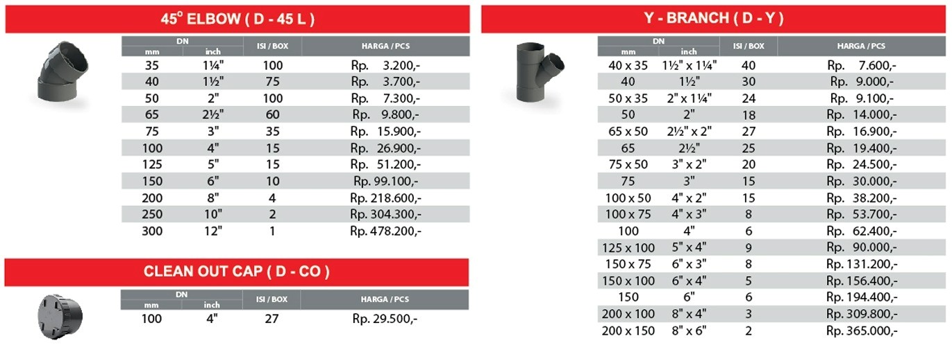 Daftar Harga dan Ukuran Fitting Sambungan Pipa Desember